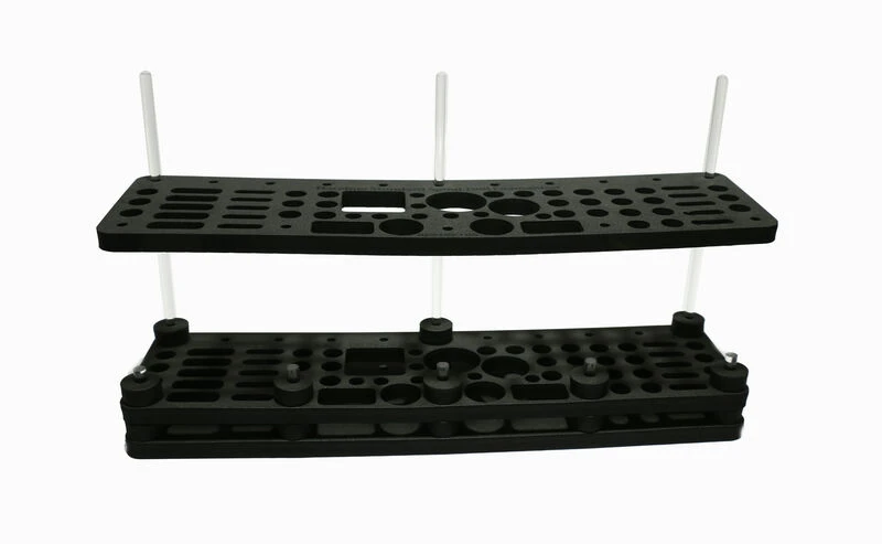 The Hareline Foamanizer 16” Standard Tool and Thread Caddy. This Standard Thread and Tool Module holds a lot of tools and thread. This can hold stackers, scissors, bobbins and more. The sides connect to hold glue, thread and other accessories.