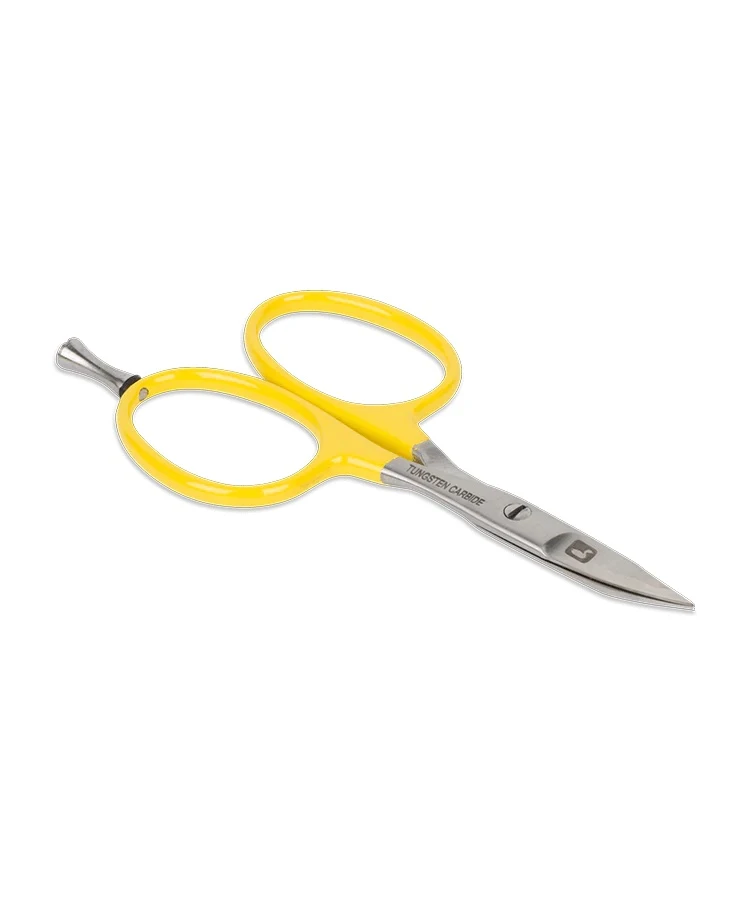 Loon’s All Purpose Tungsten Curved Scissors are a slightly curved pair of tying scissors that will do everything except wear out. Bearing resemblance to Loon’s Ergo All Purpose Scissors, these have Ergo Handles, a Precision Peg, versatile shape & sizing, tungsten carbide construction, and the perfect amount of curve. Ideal for deer work, saltwater or larger streamers. The larger loops are perfect for tyer’s with larger fingers.
