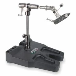 The Transformer is a high quality product that thanks to a fast coupling device on the shaft can be transformed from in-line vise to tube-fly vise or streamer vise. Three vises in one with just a click. The stainless steel shaft is in-line full rotary by dual precision ball bearings. All parts of three vises are included with Transformer. The steady pedestal base has a useful integrated tool rack and connection for magnifying glass item 642 (tools and magnifying glass not included).